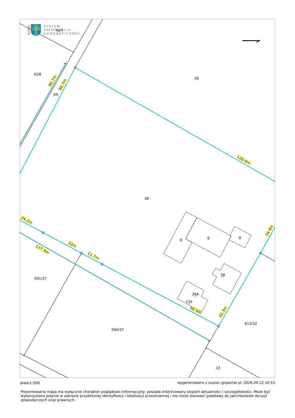 Współczynnik kształtu: sparametryzowany stosunek powierzchni terenu do jego obwodu, maksymalnie wynosi 10; im wyższa wartość współczynnika tym działka ma bardziej proporcjonalny kształt