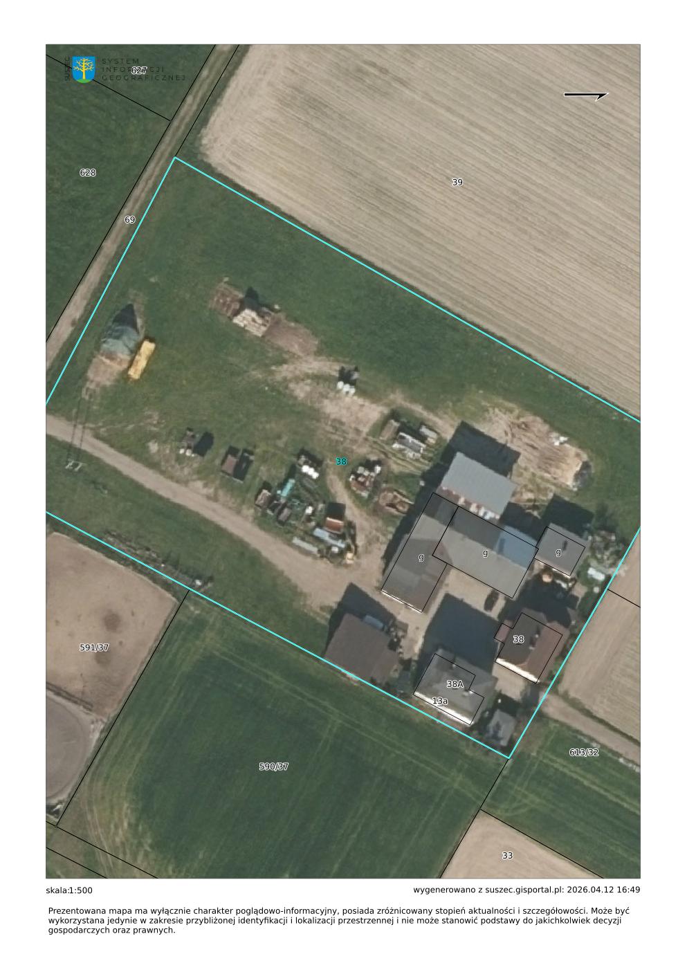 Informacja o wysokościach i spadkach na działce oparta została na danych numerycznego modelu terenu z 2021 - punkty wysokościowe rozmieszczonych w siatce co 4m